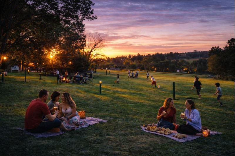 Extensive lawn and open-air areas suitable for festivals, markets, and group gatherings